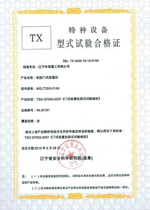 LDP电动单梁型式试验合格证